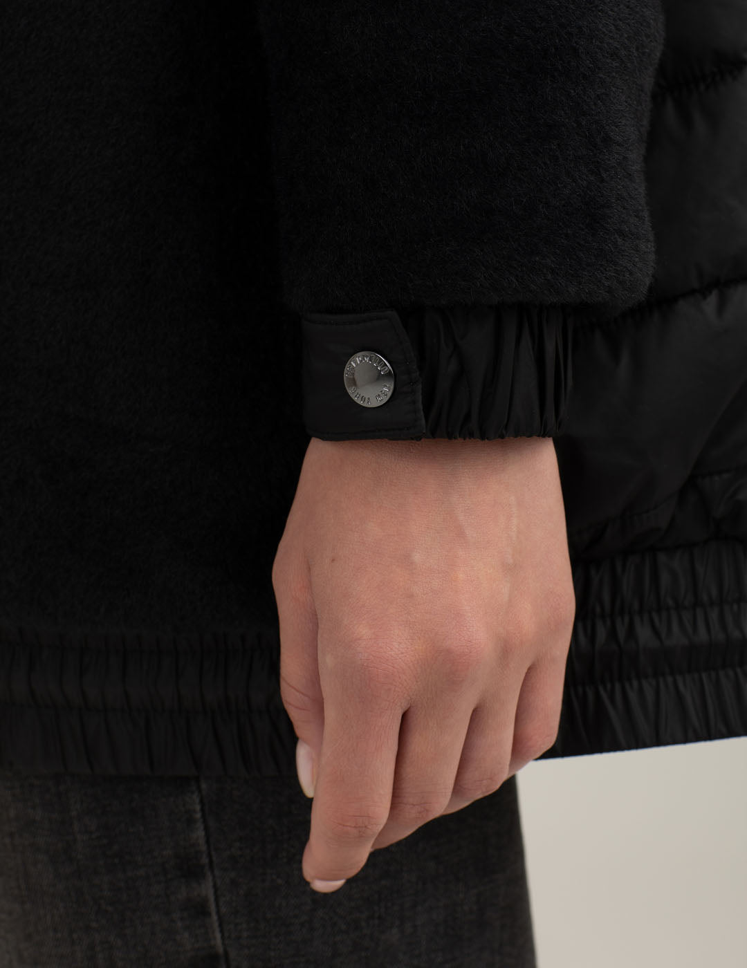 Fur-effect wool-blend puffer jacket with iridescent details BLACK