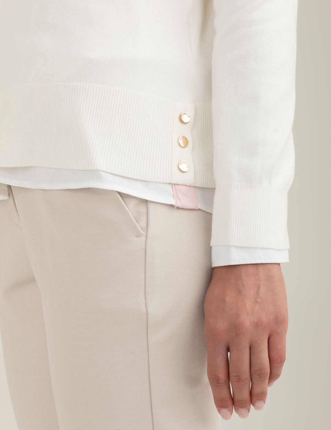 Una maglia dal design essenziale e curato. I rivetti metallici logati ai fianchi e il logo ricamato a petto donano un tocco distintivo a un capo leggero e confortevole, perfetto per la stagione.