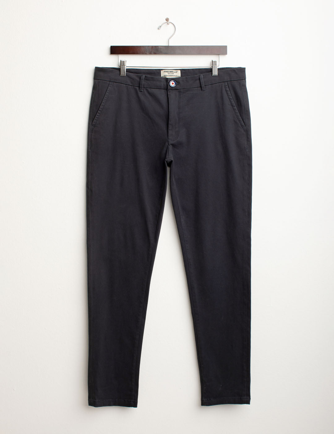Un pantalone dallo stile pulito e versatile, con vestibilità slim “Mr. Bryan”. Leggermente elasticizzato e tinto in capo, combina comfort e carattere. I dettagli colorati e personalizzati donano un tocco distintivo al design.